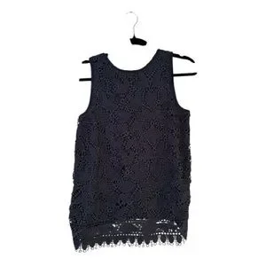 Elegant navy blue lace sleeveless top. Perfect for layering or wearing alone.