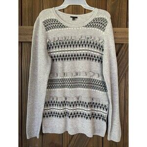 Talbots Gray Ruffle Sweater Womens M Fair Isle Winter Lambswool Wool Blend