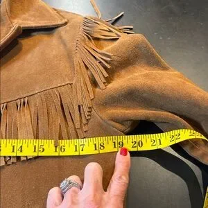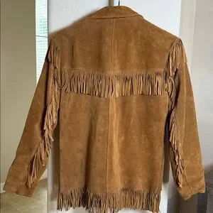 ✨ Vintage Kids Fringe Suede Leather Jacket – Size 16 ✨