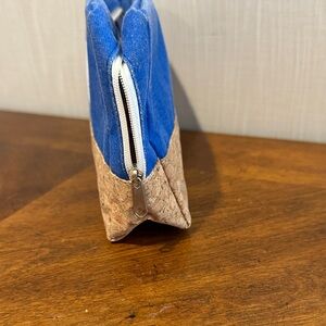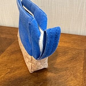 Stylish and functional, this blue and tan cosmetic bag features a charming paw print design. Perfect for organizing your essentials on the go. USED… Minor discoloration on the blue fabric. Please view photos closely.