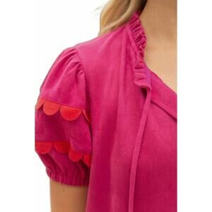 The Scallop Detailed Suede Dress by Voy is a chic addition to your holiday party wardrobe in a striking Blue/Green hue. This short sleeve shift dress features scallop details on the puff sleeves and skirt hem, adding a touch of elegance. Crafted from faux suede with stretch, it offers an easy fit with a V-neckline and spaghetti strap tie closure for customizable wear. Washing is made simple with hand wash and line dry care instructions. Model is 5'10" and wearing a size small, designed for sizes 4-8.