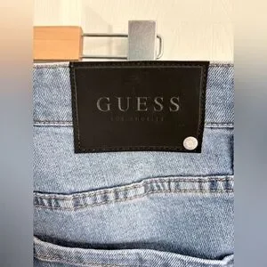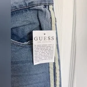 Chic light blue skinny jeans by GUESS. Features stylish side stripes. Ideal for casual wear.