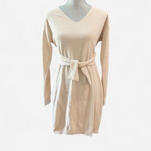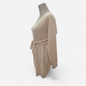 Oversized V-neck sweater dress tie knot size large Soft blush pink cream