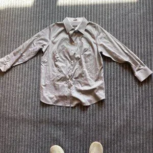 Talbots Button Front Top Women's Wrinkle Resistant Long Sleeve in a Chambray gray/blue. Size 16WP