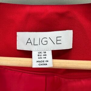 Keywords: ALIGNE, Daphne Blazer, Red Blazer, Womens Blazer, Size 14, Long Waisted, Padded Shoulders, Career Wear, Business Attire, Office Wear, Formal Jacket, Contemporary Fashion, Modern Blazer