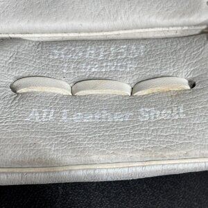 A professional‑grade Rawlings baseball glove designed for serious youth players seeking precision and durability. Crafted with a genuine all‑leather shell, this white 11.5\" mitt offers excellent feel, control, and long‑lasting performance. Features include a checkerboard web, detailed leather lacing, and reinforced thumb and pinky areas for added stability. Minor wear consistent with light use; leather remains supple with slight discoloration on the laces.