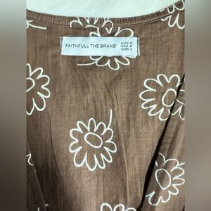 FAITHFUL the BRAND Chocolate brown MARTA daisy print deep V Midi Dress size 8