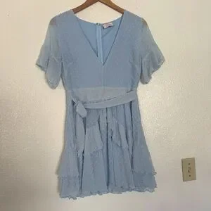 ShowPo Cirilla Blue Polka Dot Mini Tie Dress Size: 6