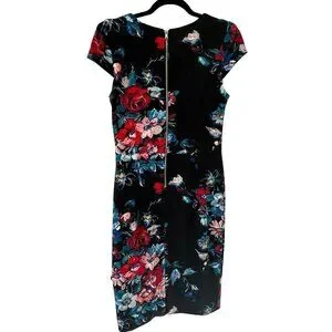 Betsey Johnson Black Floral Midi Sheath Bodycon Career Dress