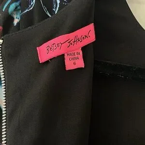 Betsey Johnson Sz 6 Black Floral Midi Bodycon Career Dress Office Siren Party