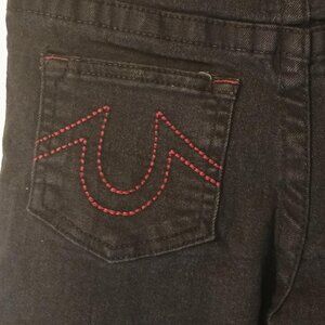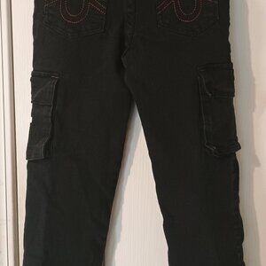 True Religion Cargo Jeans Kids 7 Black Denim Logo Pants Adjustable Waist