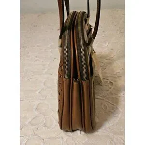 This Patricia Nash Rovina Leather Shoulder Bag in Florence Brown is a must-have for any stylish woman. The bag features a beautiful floral lace design and brasstone hardware, making it perfect for any occasion from travel to weddings. The top zipper closure and 18.125" handle drop make it easy to carry all your essentials, while the inner pockets and dividers keep them organized.