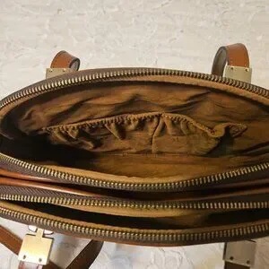 The bag is made of high-quality leather and lined with faux suede. It does not come with a dust bag. It is perfect for any woman who loves to accessorize. The bag is new with tags and retails for $299.95.