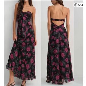 For Love & Lemons Teagan Halter Floral Maxi Dress Black Pink S Elegant Garden