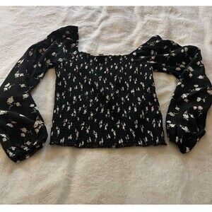 This American Eagle Peasant Blouse in size large features a flattering Square Neckline and Elastic body accent for a comfortable and slim fit. The Floral Print and Balloon Sleeves add a feminine touch, making it perfect for Travel, Party/Cocktail or Casual Occasions. crafted with 100% viscose silky fabric, this Black blouse is easy to care for and suitable for all Seasons. It's a great addition to any wardrobe and can be machine washable for garment care. Perfect for the fashion-savvy woman looking for a Peasant-themed blouse, this piece is sure to make you stand out. Be sure to check out the sellers other great items! New without tag Stretch
