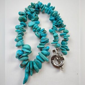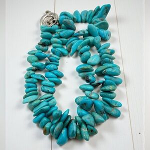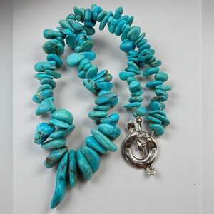 Genuine Turquoise Graduated Nugget Necklace 16” 65g Sterling Toggle Clasp