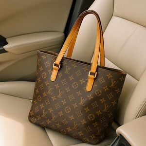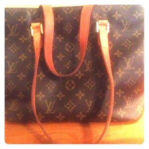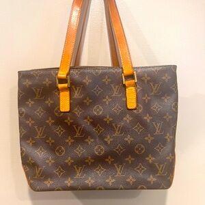 Louis Vuitton tote, LV authentic bag, Cabas Piano, GM monogram bag, LV shoulder tote, luxury designer handbag, vachetta leather, classic LV monogram, brown LV purse, discontinued LV style, verified authentic Louis Vuitton