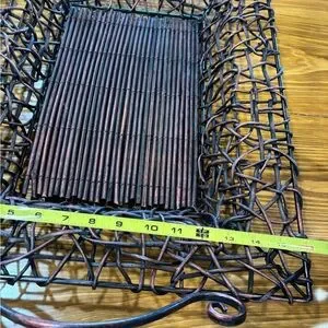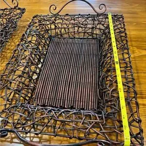 Enhance your home decor with this rustic brown woven metal basket. Perfect for adding a touch of elegance to any room.