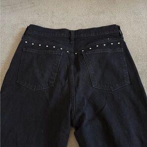 Stylish black jeans with studded accents. Straight leg design. Perfect for any occasion.