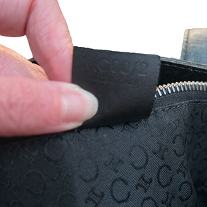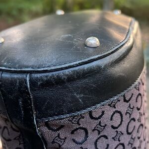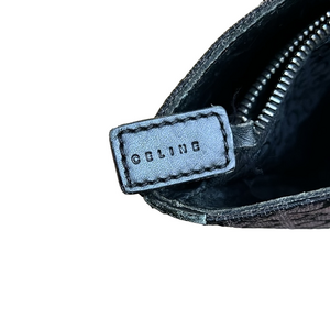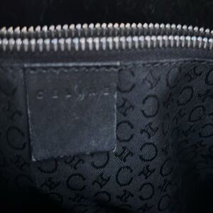 Lovely Celine Shoulder Bag! 3 sections inside include a zipper section in the middle. Clean fabric interior in C pattern. Has wrinkles on the exterior fabric, and leather marks and rubbing along edges and bottom.