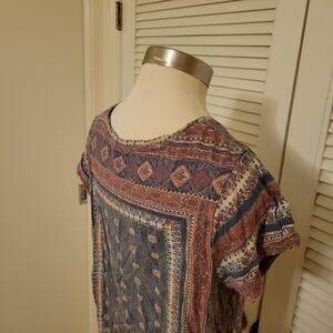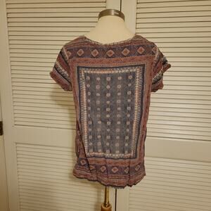 Boho 2000s Lucky Brand XL Geometric Printed Lightweight Linen Blend Tee Shirt XL