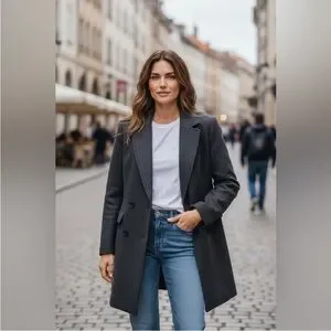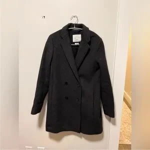 Chic charcoal coat with a soft wool blend. Ideal for stylish layering.