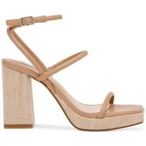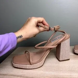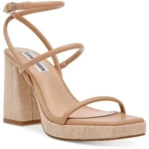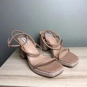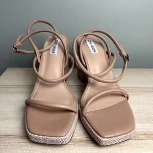 Steve Madden Pennie Tan Brown Faux Leather Strappy Block Heels Sandals size 9.5