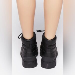 Step out in style with these sleek black lace-up boots. Perfect for any occasion, they offer both comfort and fashion-forward design.