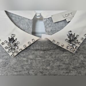 LOFT Gray Sweater with Embellished Collar Layered Look New Size M