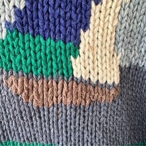 Good pre-owned condition with several small, faint stains and minor dye transfer throughout, most noticeable on lighter areas. These marks appear embedded in the yarn and do not seem to wash out. *I did max out the photo limitations and wasn’t able to include every spot, but didn’t include the worst ones * No holes, major snags, or structural issues. Embroidery remains intact and secure. Please review all close-up photos for condition details.