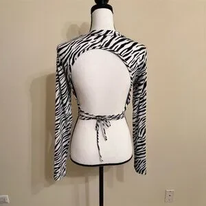 Shein Women's Zebra Print Backless Long Sleeve Crop Top Size M 6 New