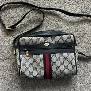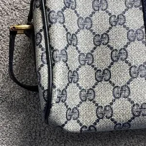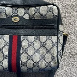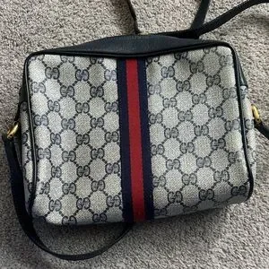 Elevate your style with this vintage Gucci crossbody bag. Featuring a chic blue sherry line Ophidia design, it's perfect for any occasion. The iconic Gucci pattern adds a touch of luxury to your ensemble.