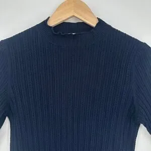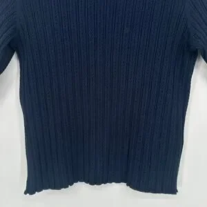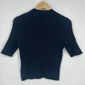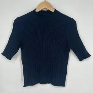 Boden Pointelle Rib Knit Mock Neck Top Knit Short Sleeve Lettuce Trim Sweater