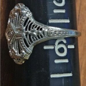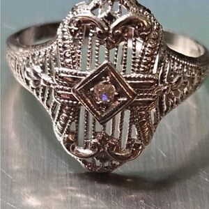 Authentic Art Deco 14k White Gold Art Deco Filigree Ring size 5.75