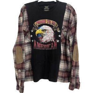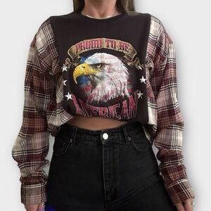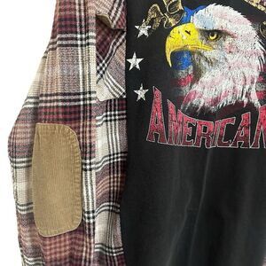 Reworked Upcycled Patriot USA Bald Eagle Grunge Biker Plaid Long Sleeved Shirt