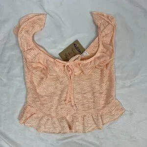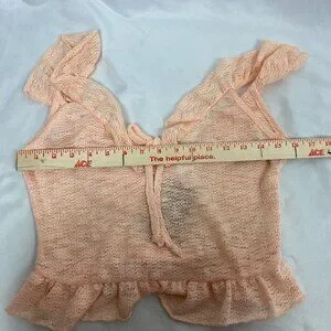 Sage The Label NWT Size S Crochet Cropped Blouse V-Neck Ruffle Pink Cottagecore
