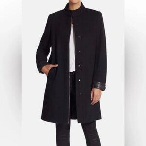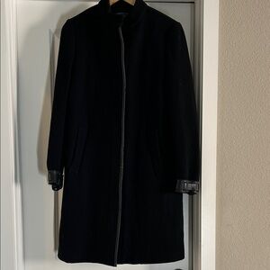 Vince wool blend coat with leather trim, size 4