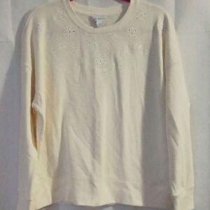 Elegant cream sweater with delicate eyelet details. Perfect for layering.