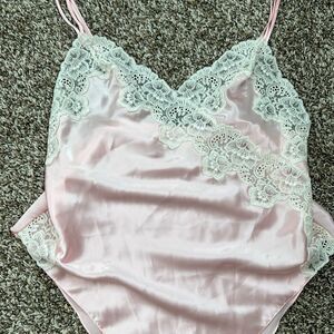 Vintage 80s Victorias Secret Gold Label Pink Lace Nightie Sexy Bodysuit Medium