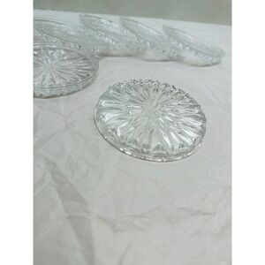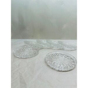 Vintage Clear Pressed Glass Coasters Set of 6 Sunburst Starburst Pattern Round