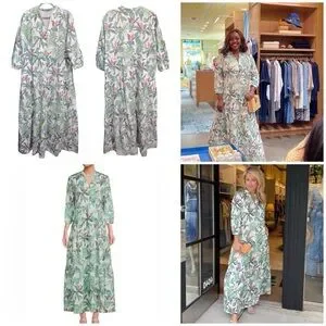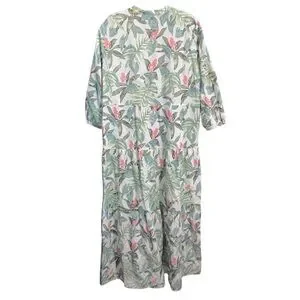 J. Mclaughlin Cunningham Palm Print Linen Blend Tiered Maxi Dress XLarge AS IS