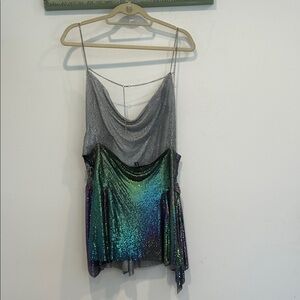 Dolls Kill Current Mood chainmail iridescent Gothic cross Mini Dress women’s Lg