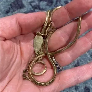 Vintage 12k Gold 19” snake Chain Fob for a Pocket Watch w two clasps