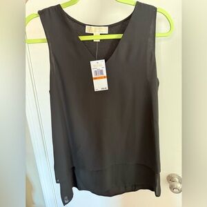 NWT Michael kors black sleeveless top. Features a V-neck and layered hem. Perfect business casual top on its own or layered.