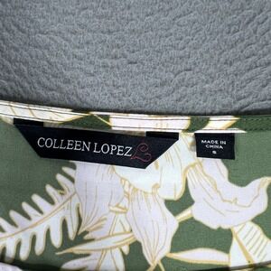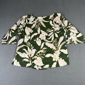 Colleen Lopez Blouse Womens Small Olive Green Floral Print 3/4 Sleeve Top
