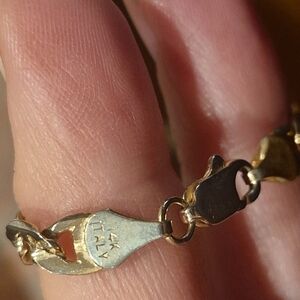 Clasp is not gold for obvious reasons. They never are. Some folks do not know this so I am posting it. Bracelet is 14k. Scrap Value is $582. I purchased it new but it is around 16 years old. Good wearable condition. Price is firm.