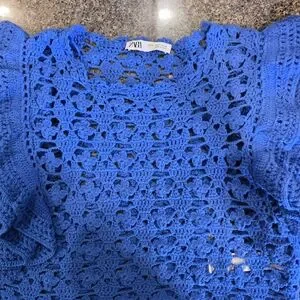 Size S. Beautiful color and condition. Cropped. 2 layers ruffle sleeve. Wear year round. Measures Ptp 16.5". Length 16". Adorable! Non smoking home.