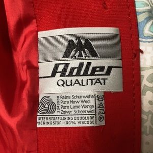 Excellent preowned condition Vintage Red Adler Wool Jacket / Blazer. No size tag but fits like a modern day 10 or large in my opinion - I am wearing it in a photo and I am usually a 6-8. Pit to pit measures approximately 21”. Top of shoulder to front bottom is approximately 27”.