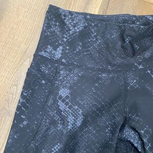 The black and gray pair of snakeskin leggings have side pockets-Size Medium