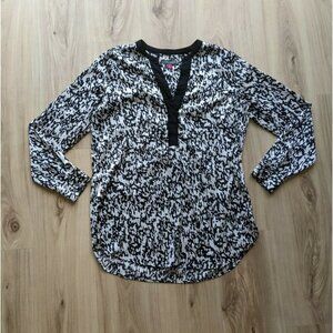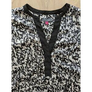 Vince Camuto Long Sleeve Silky Blouse Black & White Womens Small